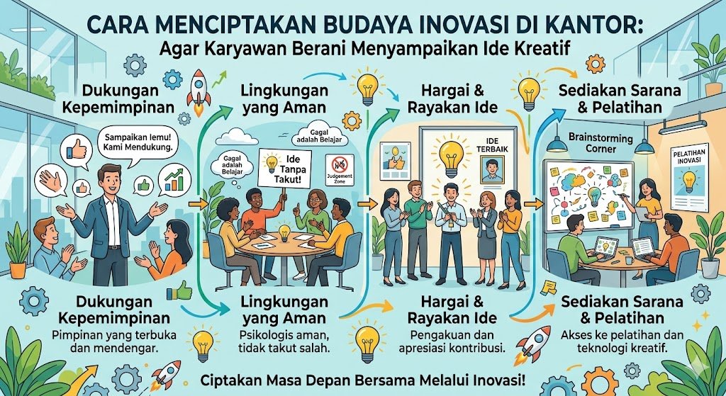 Inovasi bukan sekadar hasil dari teknologi canggih, melainkan buah dari lingkungan kerja yang mendukung kebebasan berpikir. Di era kompetisi bisnis yang ketat, perusahaan yang mampu bertahan adalah mereka yang memiliki sumber daya manusia yang proaktif dalam menciptakan solusi baru. Menciptakan budaya inovasi di kantor memerlukan komitmen dari tingkat manajemen hingga staf operasional untuk membangun ruang aman bagi kreativitas agar dapat tumbuh dan berkembang secara berkelanjutan.