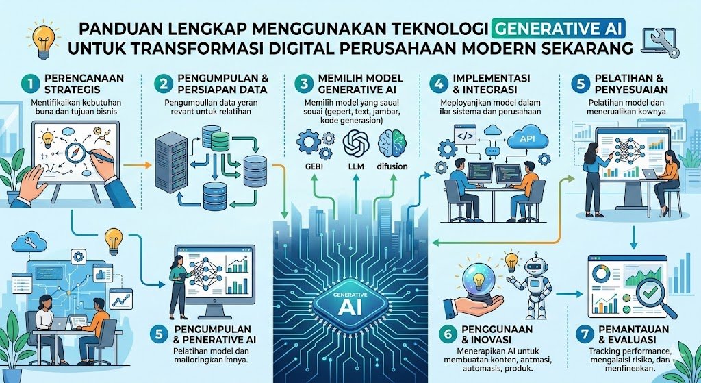 Transformasi digital bukan lagi sekadar pilihan bagi perusahaan yang ingin bertahan di era kompetisi global yang semakin ketat. Kehadiran teknologi Generative AI atau kecerdasan buatan generatif telah membawa perubahan paradigma dalam cara bisnis beroperasi, berinovasi, dan berinteraksi dengan pelanggan. Berbeda dengan AI tradisional yang hanya menganalisis data yang ada, Generative AI mampu menciptakan konten baru mulai dari teks, gambar, kode pemrograman, hingga solusi desain yang kompleks. Mengintegrasikan teknologi ini ke dalam alur kerja perusahaan bukan hanya tentang mengikuti tren, melainkan strategi fundamental untuk meningkatkan produktivitas dan efisiensi operasional secara signifikan di masa sekarang.